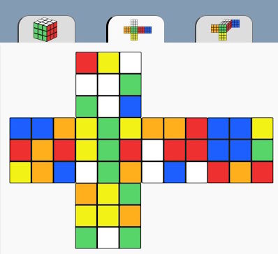 Press the scramble button to shuffle the cube then let the program find the solution with the solve button. The calculated solution will be almost optimal.